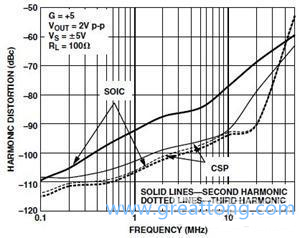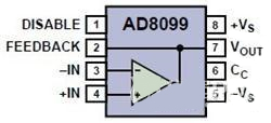 目前,ADI公司提供采用新的低失真引腳排列三種高速運算放大器:AD8045,AD8099和AD80003。