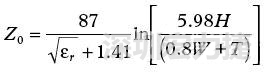 公式(6)可以用于計算一塊FR4板的特征阻抗。